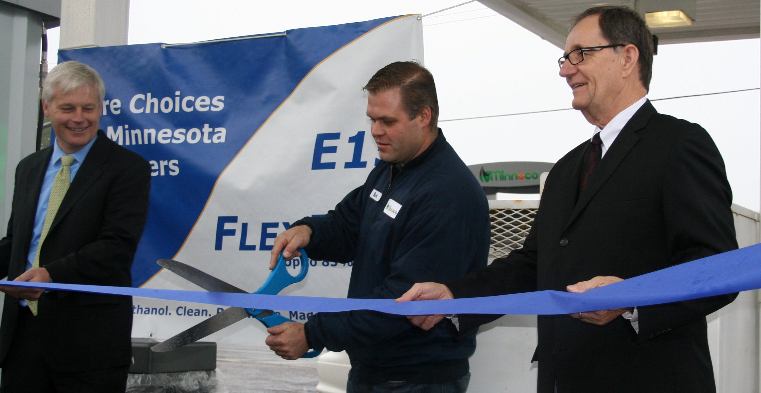 With TV cameras rolling and a steady stream of customers pulling in to fill up their tanks at Penn Minnoco off Penn Ave. in south Minneapolis, the ribbon was cut Wednesday morning on four new flex fuel pumps that dispense E15 (a blend of 15 percent ethanol, 5 percent more than what is blended in all Minnesota unleaded gasoline), E30 (a blend of 30 percent ethanol) and regular gasoline.