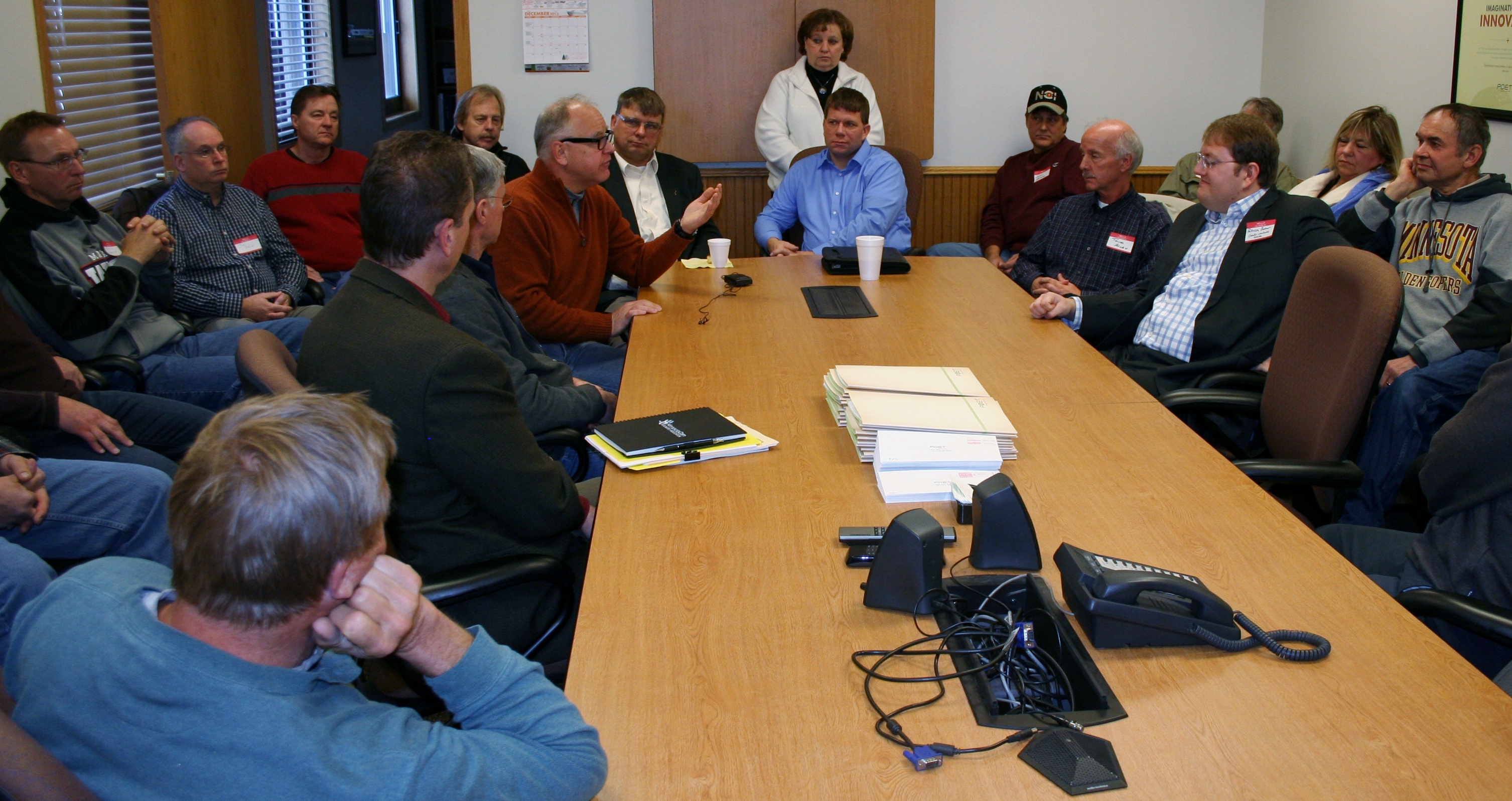 Congressman Tim Walz met with farmers and renewable fuels supports to talk about proposed cuts to the Renewable Fuels Standard on Monday at POET Biorefinery in Lake Crystal.