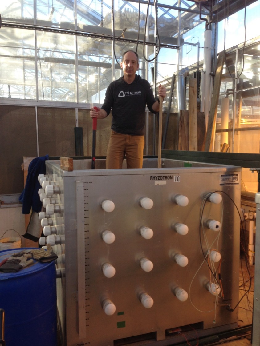 Dr. Tim Griffis working in one of the temperature and water-table controlled rhizotrons.