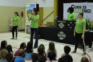 Popcorn and corn-on-the-cob (sweet corn) easily came to mind and, after some fun Q&A prompting, the kids quickly identified the third type of corn: field corn! This led to another fun, interactive game where students learned about what items are made from field corn. From corn flakes to crayons, and even ethanol the kids learned about how corn is used in everyday products.
