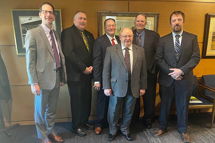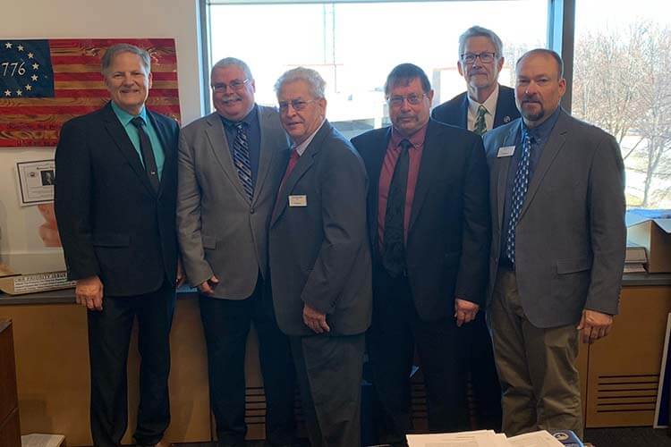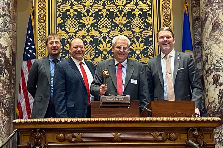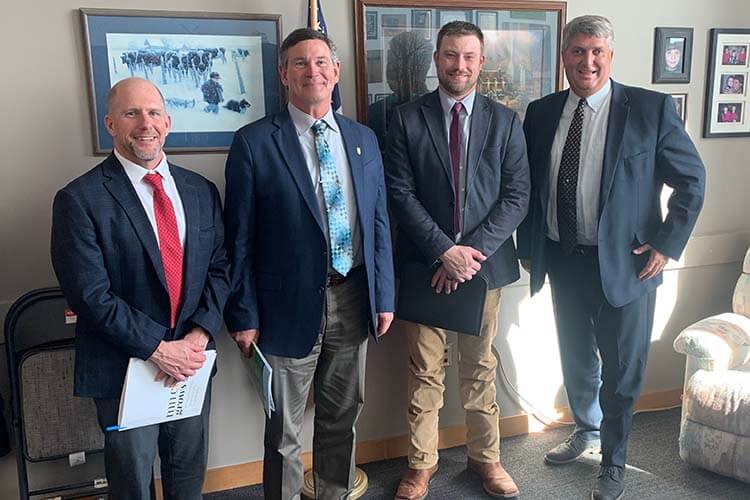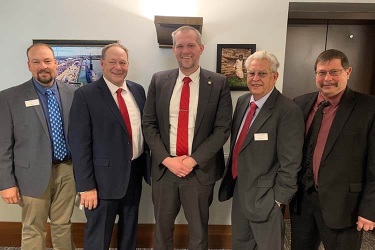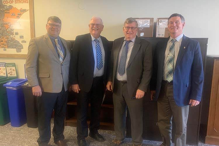 Above: From left to right: Grower-leaders Jim Kanten, Wes Beck, and John Swanson with Senate Minority Leader Mark Johnson.