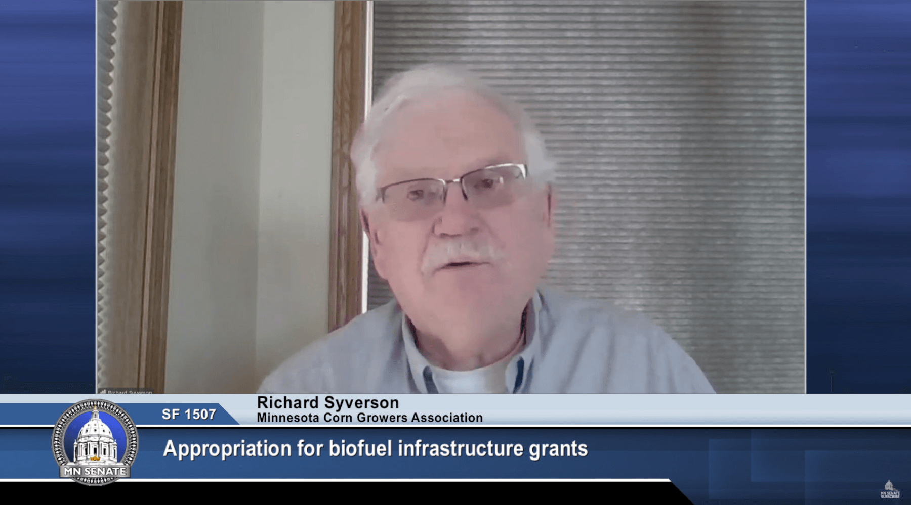 MCGA board member Richard Syverson testifies in support of SF1507/HF43, a bill that would provide funding for the state’s biofuel infrastructure grant program, during a State Senate committee hearing on Monday, March 10, 2025.